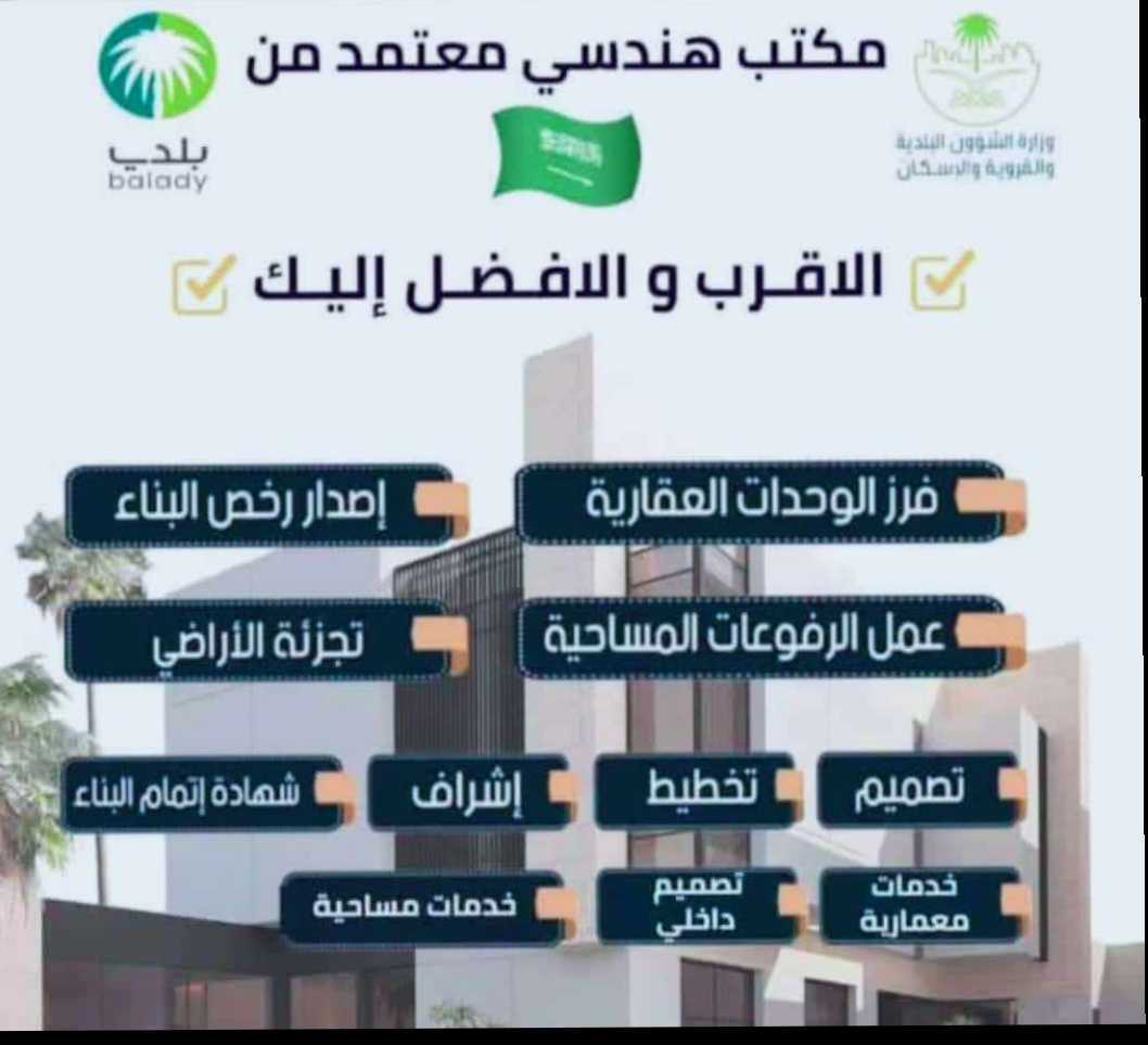 #️⃣مكتب هندسي معتمد من الهيئة السعودية 🌐للمهندسين والشؤون البلدية ومنصة بلدي #️⃣على النظام الكود السعودي المعتمد نقدم لكم 👇 1️⃣اصدار رخص بناء وانواعها (فلل_عمائر_سور وملحق_هدم_ترميم_سكني…